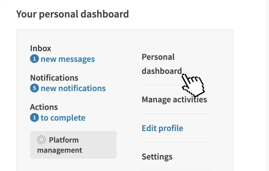 - Navigate to the 'manage your activities' section within 'your activities' drop down.