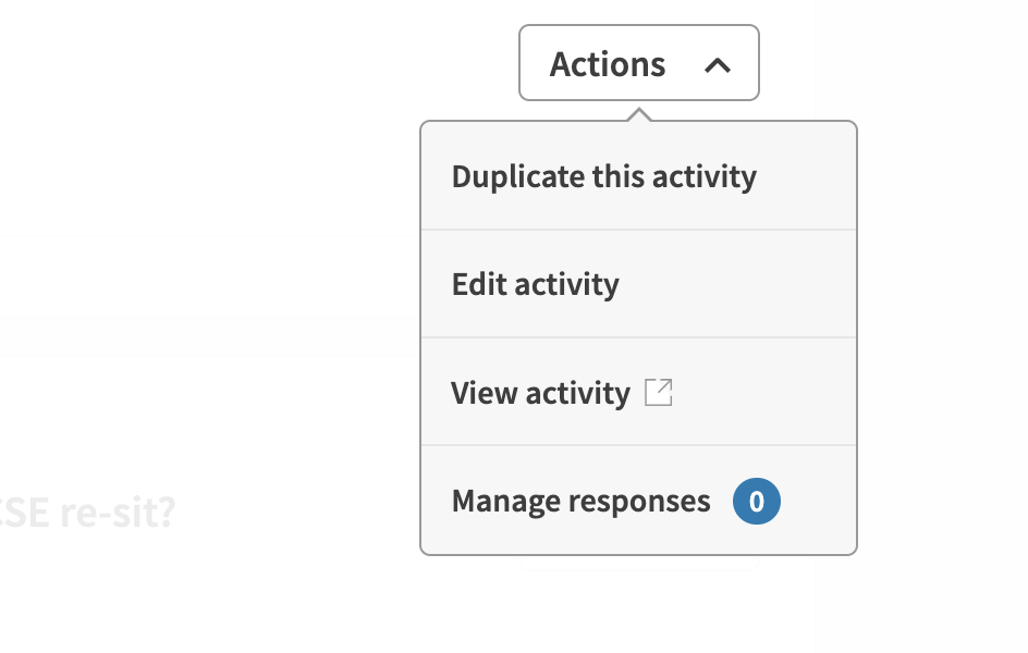 - Find the volunteer activity you wish to review, then use the 'actions' drop down on the right hand side to select 'manage responses'.